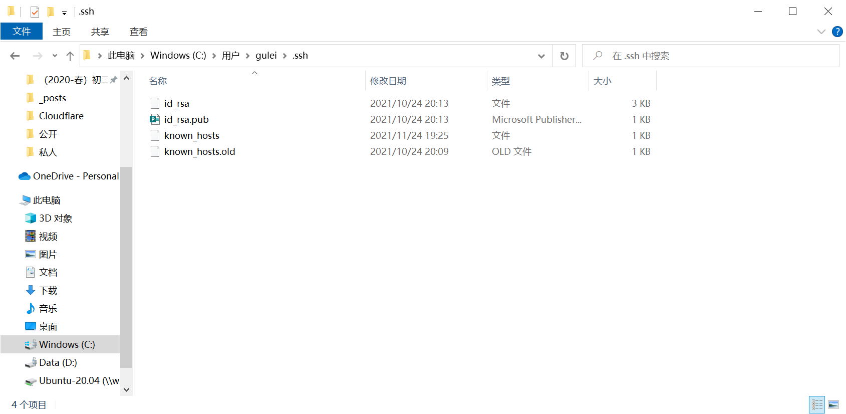 命令执行成功后,在本地电脑的名为.ssh的目录下(例如C:\Users\gulei\.ssh\)找到名为id_rsa.pub的文件,打开这个文件后将里面的内容先复制下来。