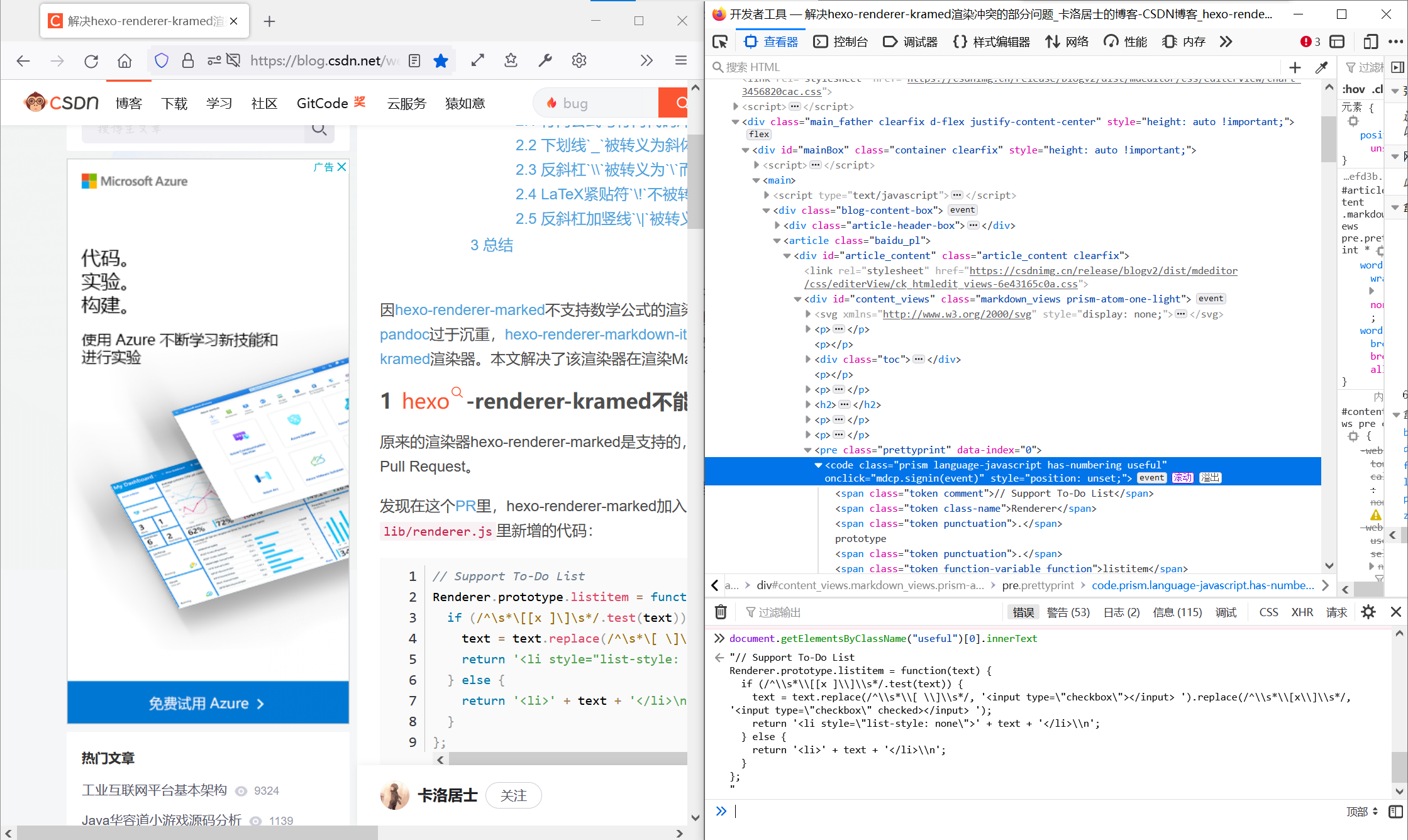 之后的话,我们直接用调试的命令行来找到这个代码块的innerText: