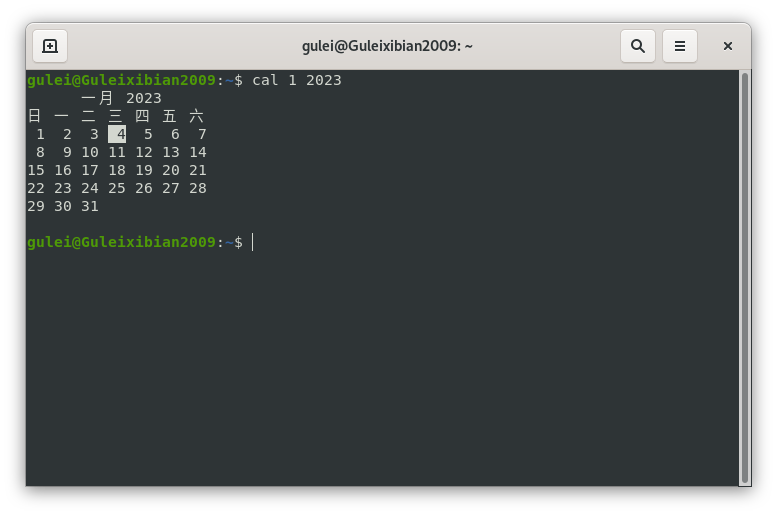Ubuntu是有日历的,但是如果你想看很久之前或很久之后的,需要点很多次。这个时候自带的cal命令就能派上用场,比如: