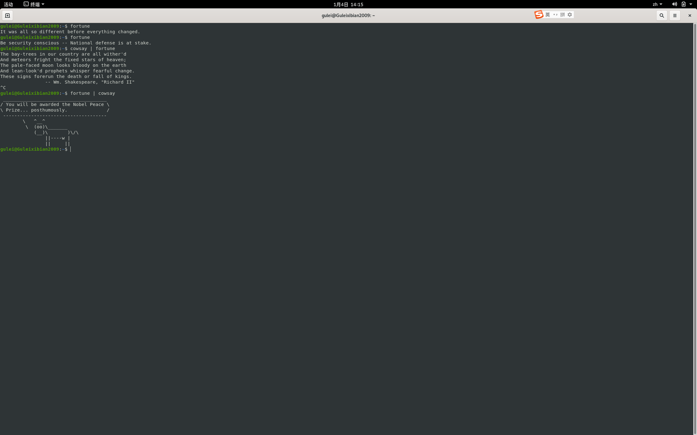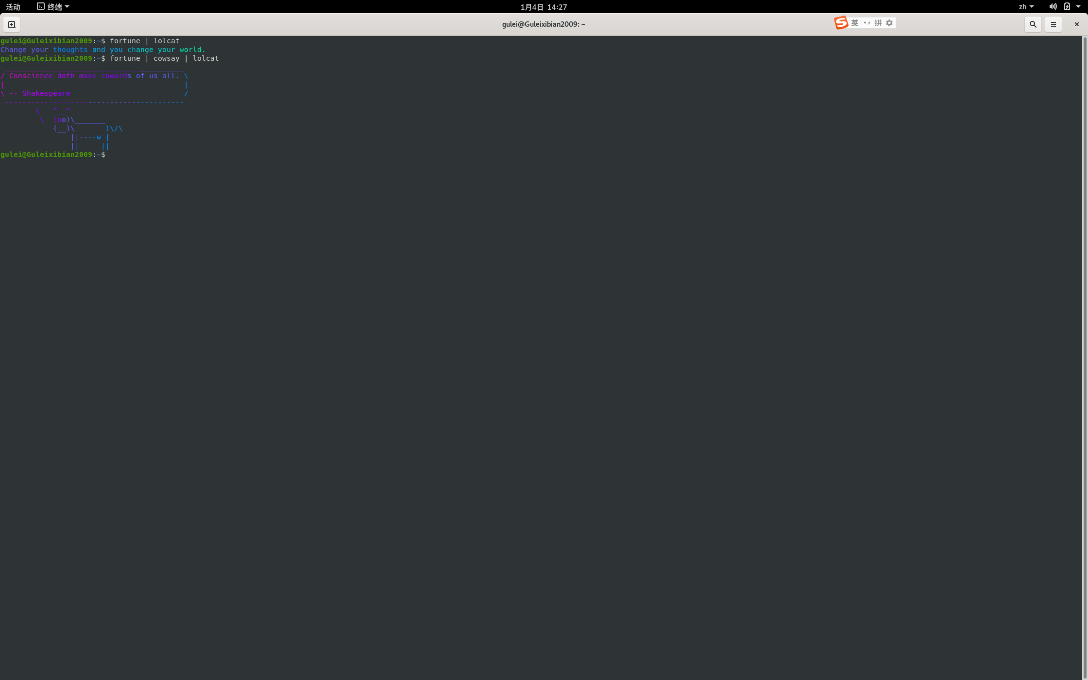 这个有点像日签,每次执行fortune都会跳出来一句名言或鸡汤: