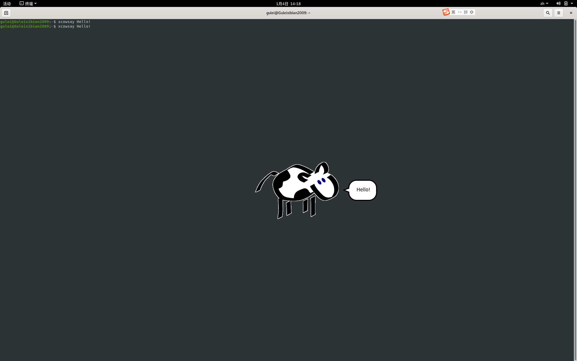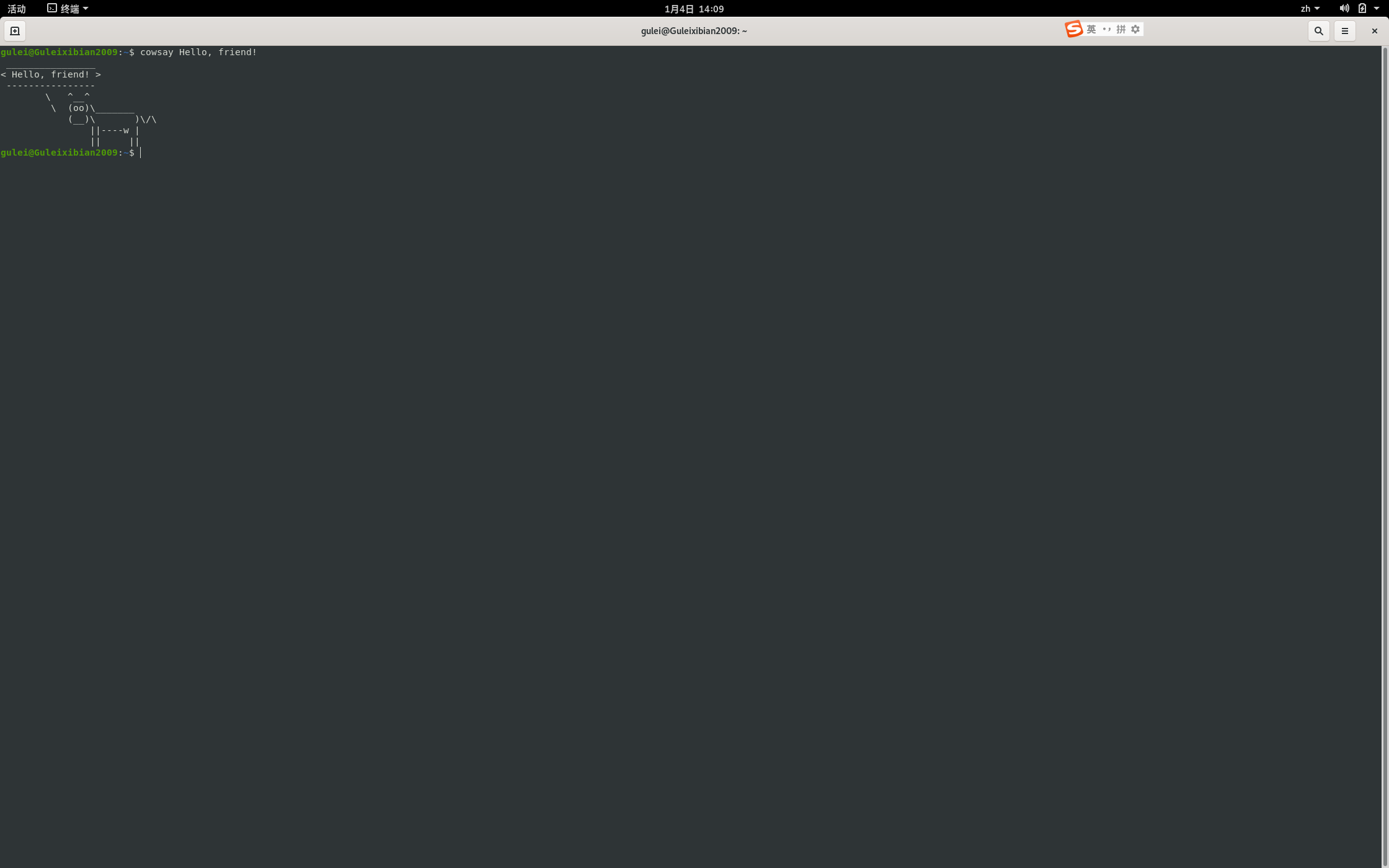 嗯……这头牛是怎么学会说话的?cowsay这个指令教了很多动物说话,比如: