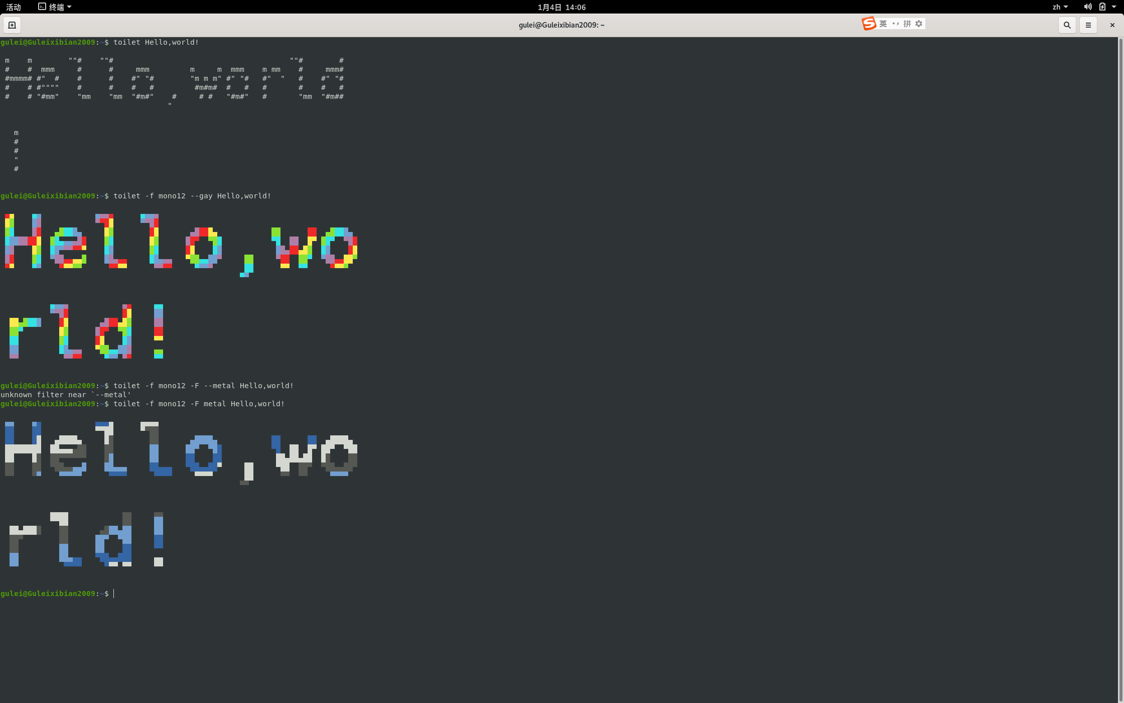 在Ubuntu里面有个命令叫lolcat,可以把任何输出变成彩虹色的: