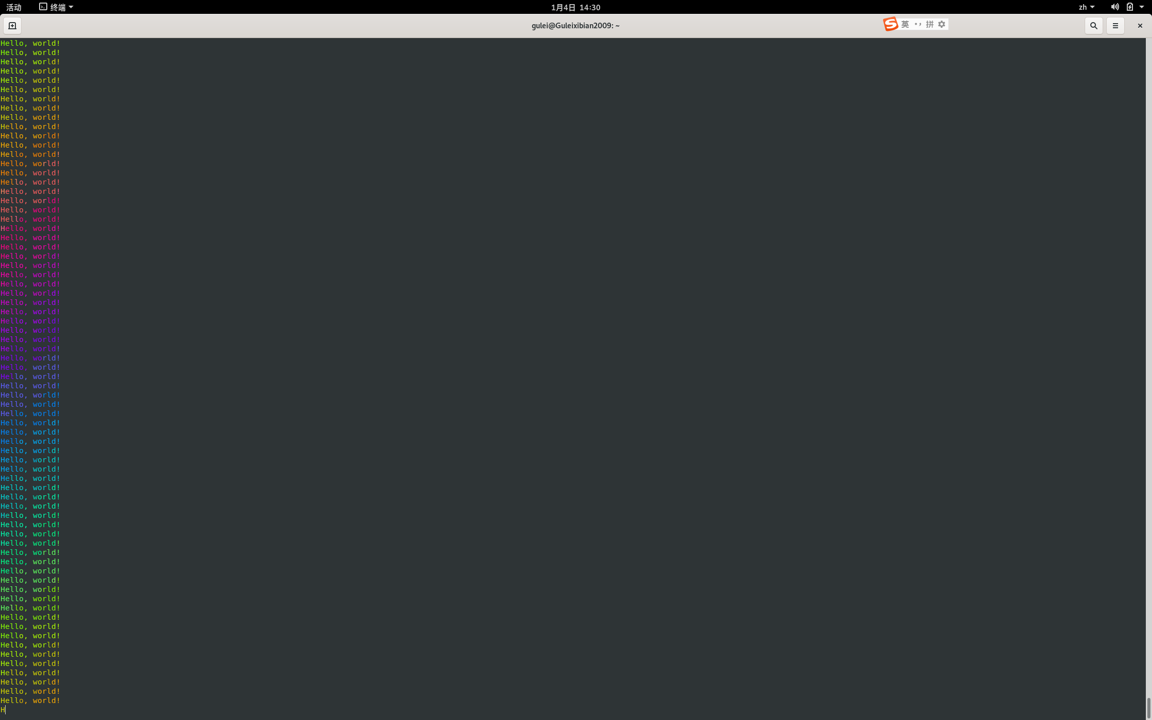 就会不停的打印Hello, world!。如果搭配lolcat使用……